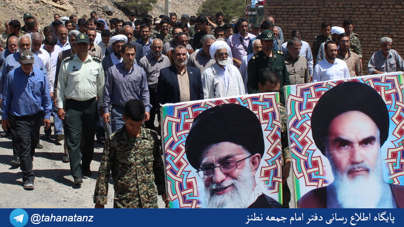 راهپیمایی در محکومیت رژیم صهیونیستی بعد از نماز جمعه مورخ 96/05/06در شهر نطنز با حضور گسترده مردم ولائی و شهید پرور شهر نطنز و امام جمعه محترم نطنز حجه الاسلام والمسلمین حاج آقا امینی جمعی از مسئولین برگزارشد.